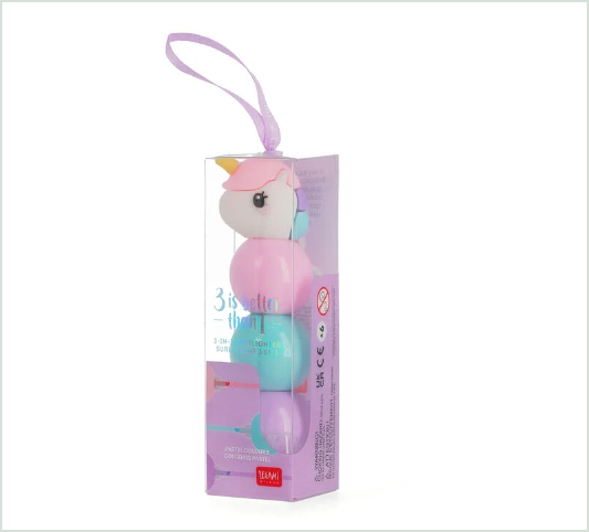 “¡Destaca todo lo importante con el Subrayador 3 en 1 – Unicorn de Legami! Gracias a sus vivos colores pastel, combina lógica y creatividad.”